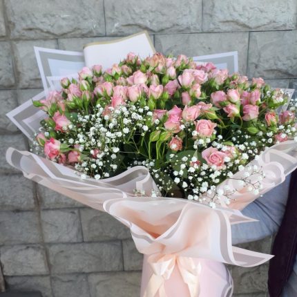 Букет из лилий, гортензии, эустомы, роз, гвоздики и гипсофилы в корзине “Карндона”