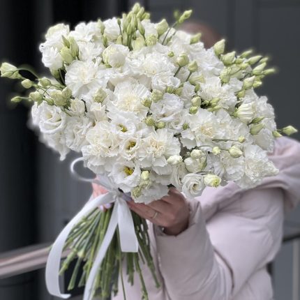 Клубнично-банановый, весенний букет с тюльпанами, нарциссами и ранункулюсами