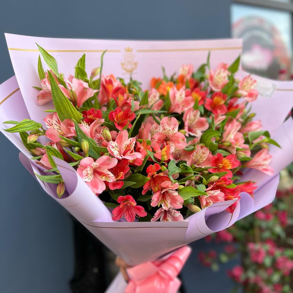 Альстромерия – 15 шт. Лента – 1 шт. Упаковка дизайнерская – 5 шт.