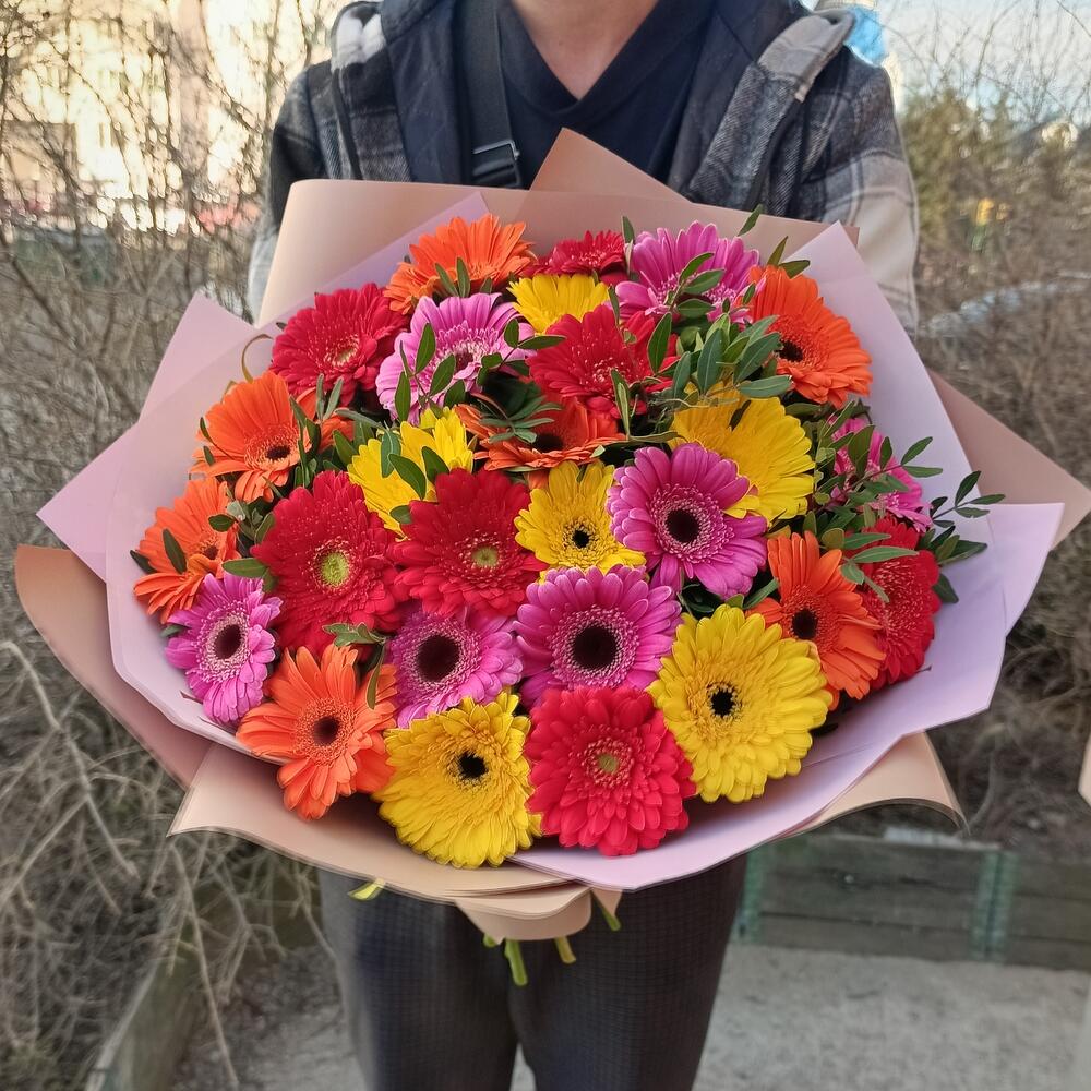 Букет из 25 разноцветных гербер