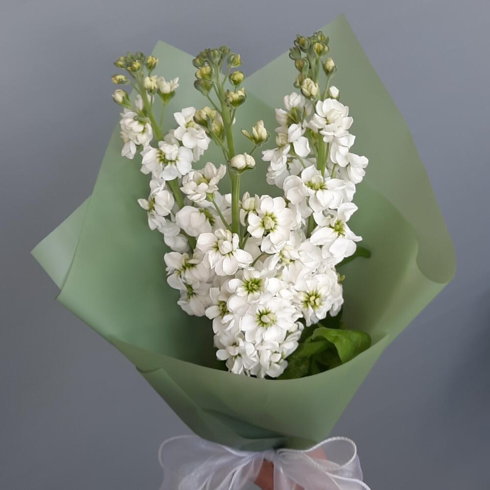 Упаковка дизайнерская – 2 шт.Лента органза – 2 шт.Маттиола белая – 3 шт.