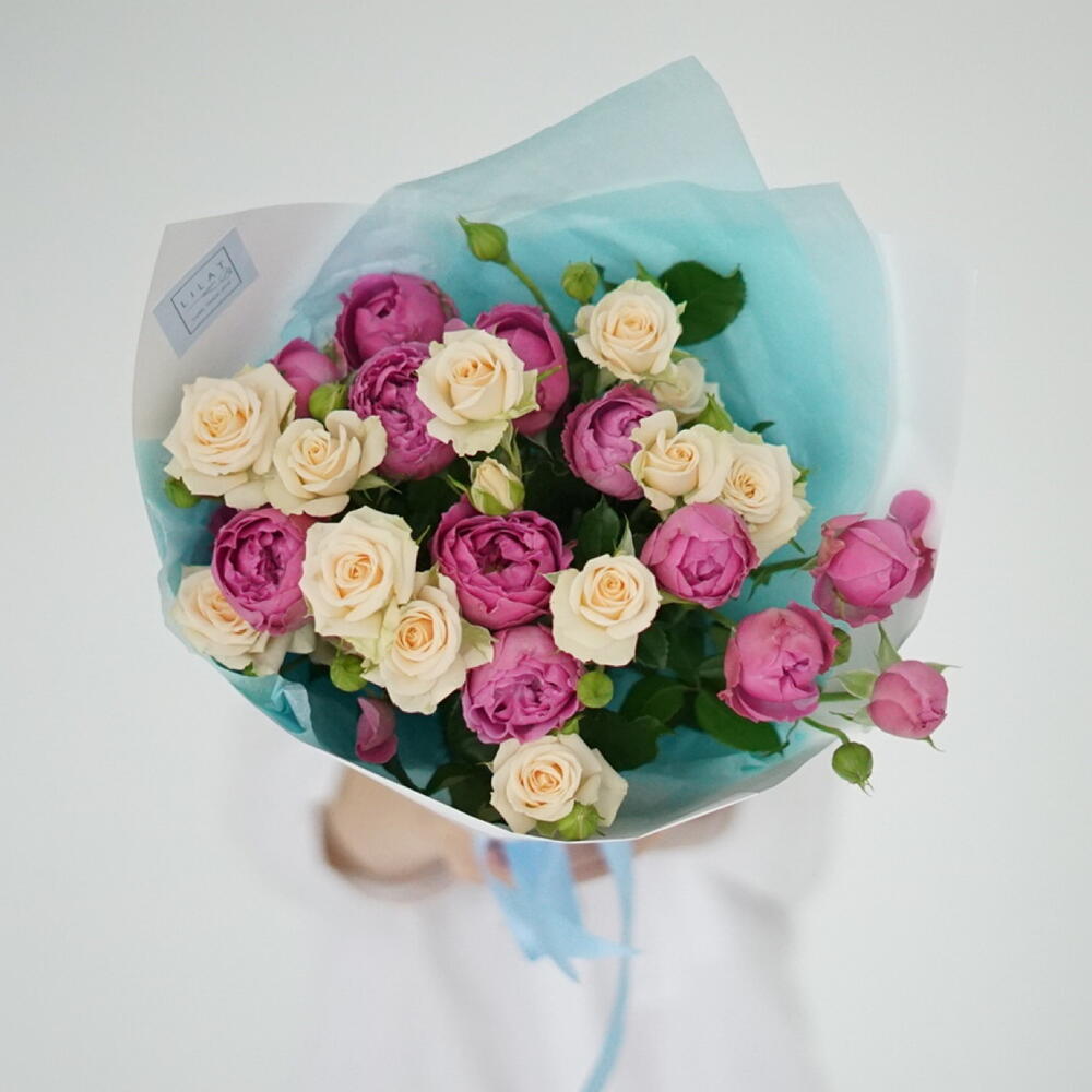 packaging design – 2 шт. gift message card – 1 шт. peony spray rose – 3 шт. free delivery – 1 шт. care instruction – 1 шт. spray rose cream – 4 шт.