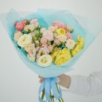 peony spray rose – 7 шт. Lisianthus – 3 шт. gift message card – 1 шт. packaging design – 2 шт. care instruction – 1 шт. free delivery – 1 шт.