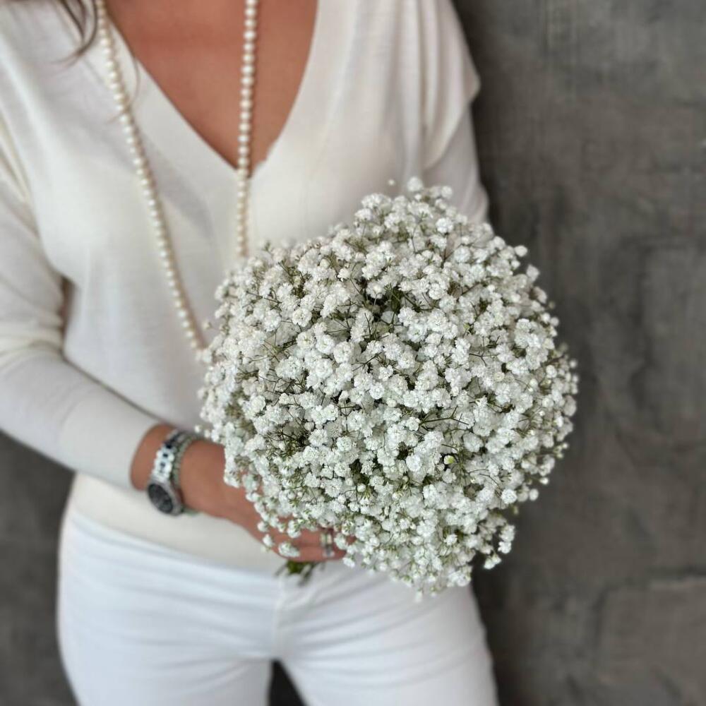 Лента атлас – 1 шт.гипсофила белая – 11 шт.