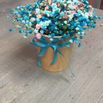 “Сиреневый туман” – композиция из гипсофилы в шляпной коробке