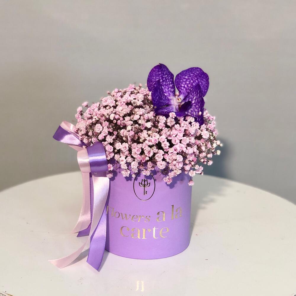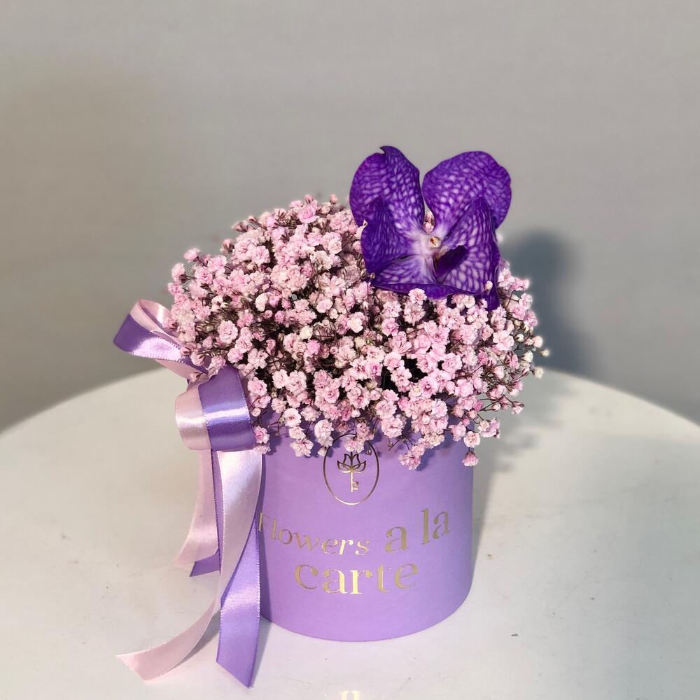 Гипсофила и орхидея Ванда в коробке S
