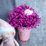 “Сиреневый туман” – композиция из гипсофилы в шляпной коробке
