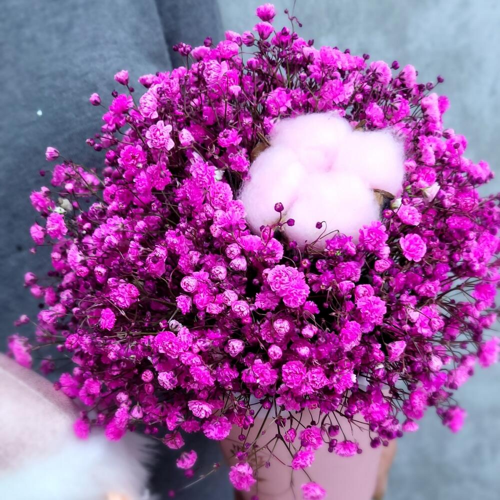 «Лавандовое созвездие» Букет из розы, гвоздики, статица и хлопка