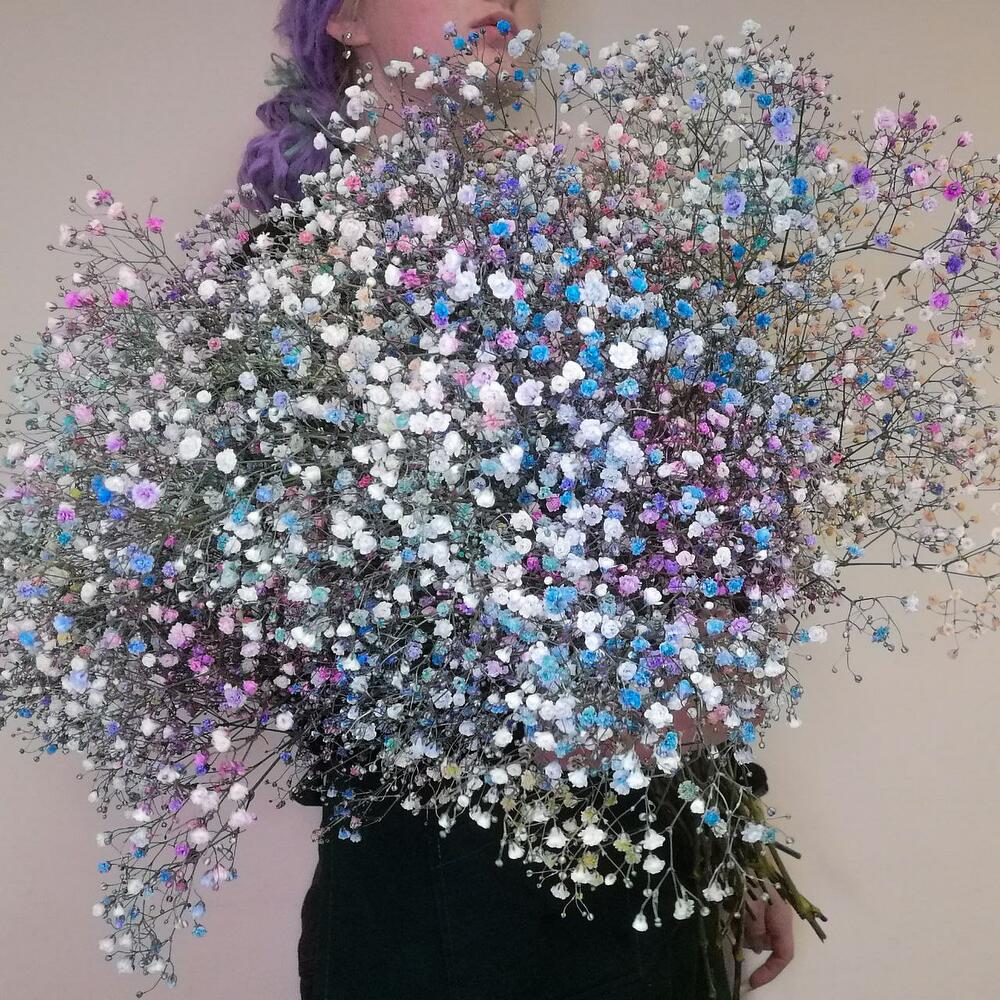 Пышный букет радужной гипсофилы