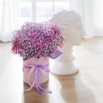“Сиреневый туман” – композиция из гипсофилы в шляпной коробке
