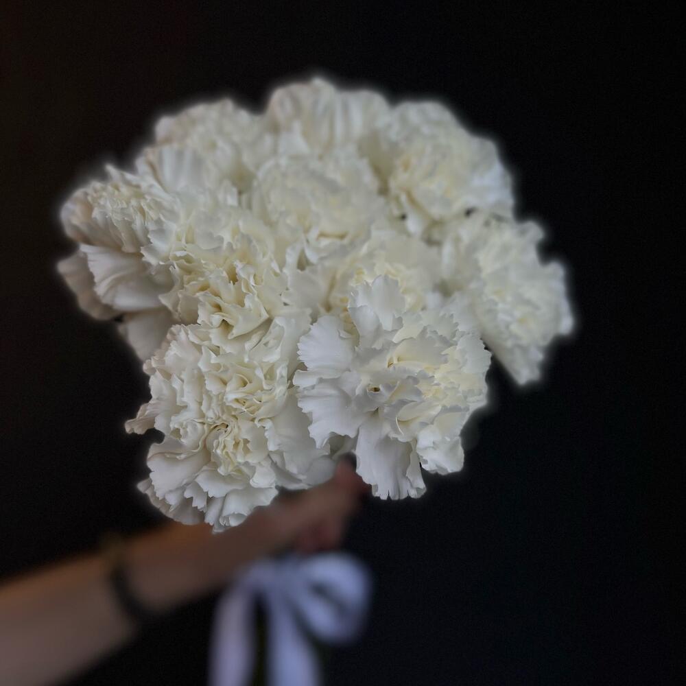 белые диантусы – 11 шт.Атласная лента – 1 шт.