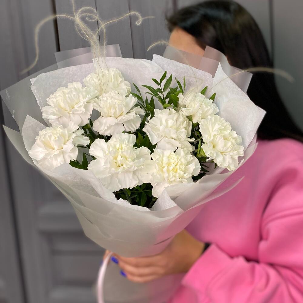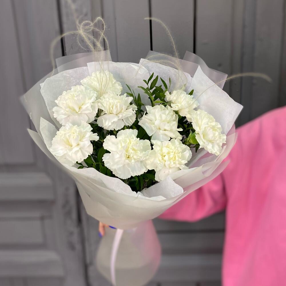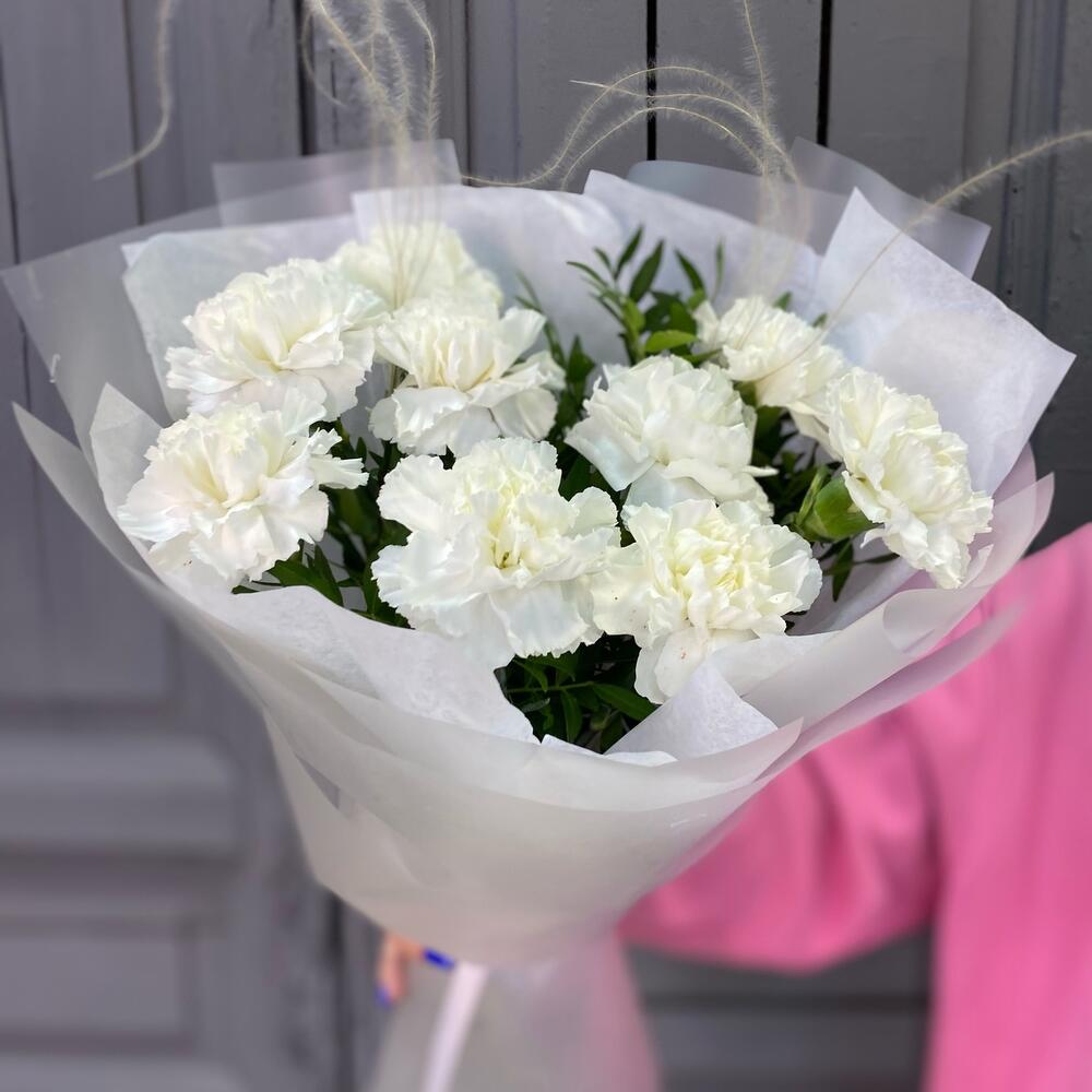Диантус – 9 шт.Фисташка – 1 шт.Упаковка дизайнерская – 4 шт.Лента атласная – 1 шт.