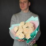 Авторский букет с пионовидными розами Свон грейс и гвоздиками