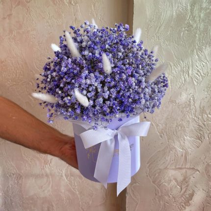 «Лавандовое созвездие» Букет из розы, гвоздики, статица и хлопка