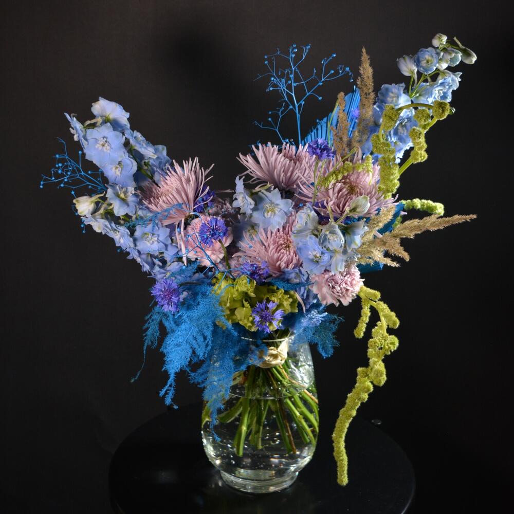 Голубой букет с дельфиниумом