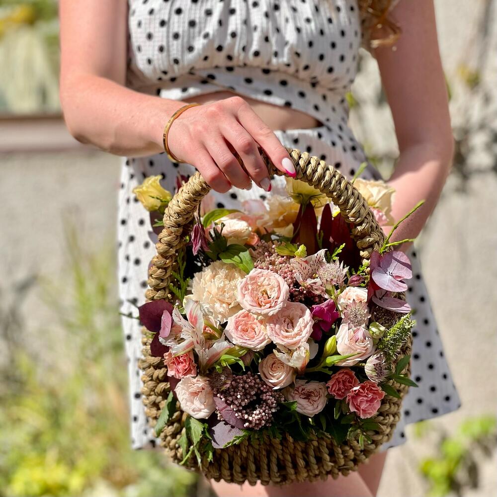 Корзина с цветами кремовая