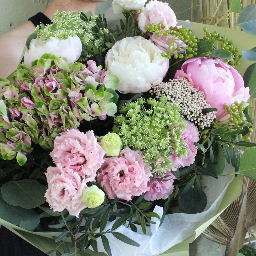 Категории: Гвоздики, Гортензии, Лизиантусы, Пионы