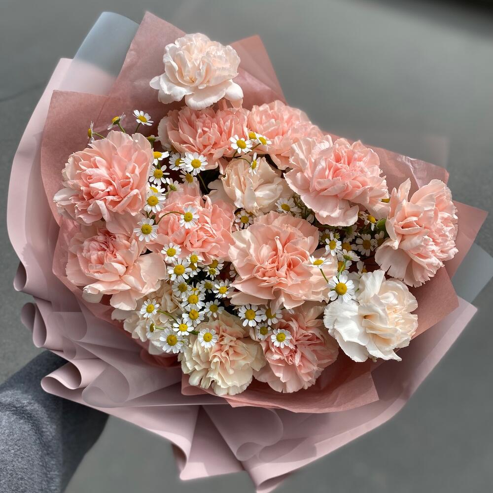 Она любит букеты, которые долго стоят(ромашки+гвоздика)