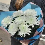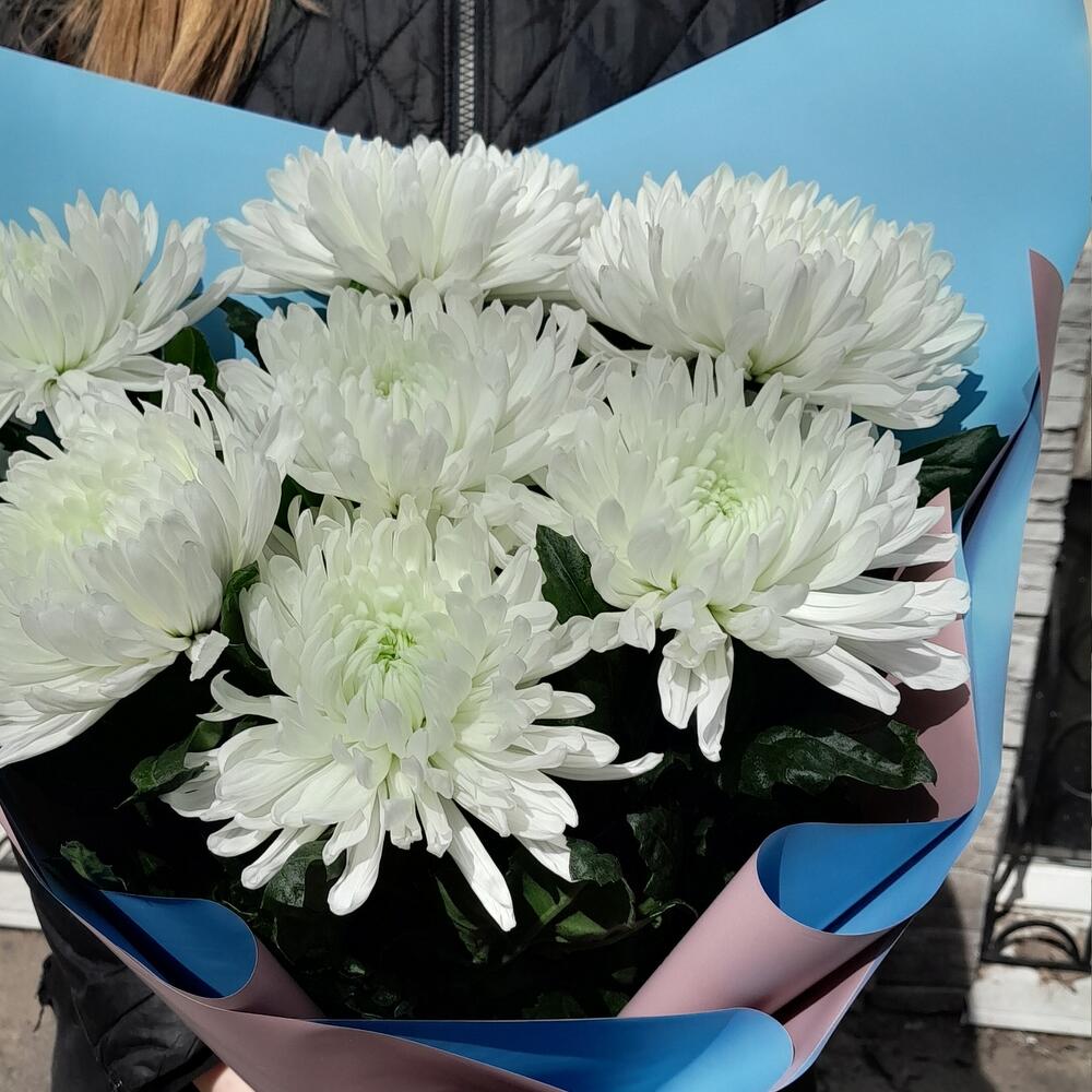 Хризантема Антонов – 7 шт.Упаковка дизайнерская – 2 шт.Лента атласная – 2 шт.