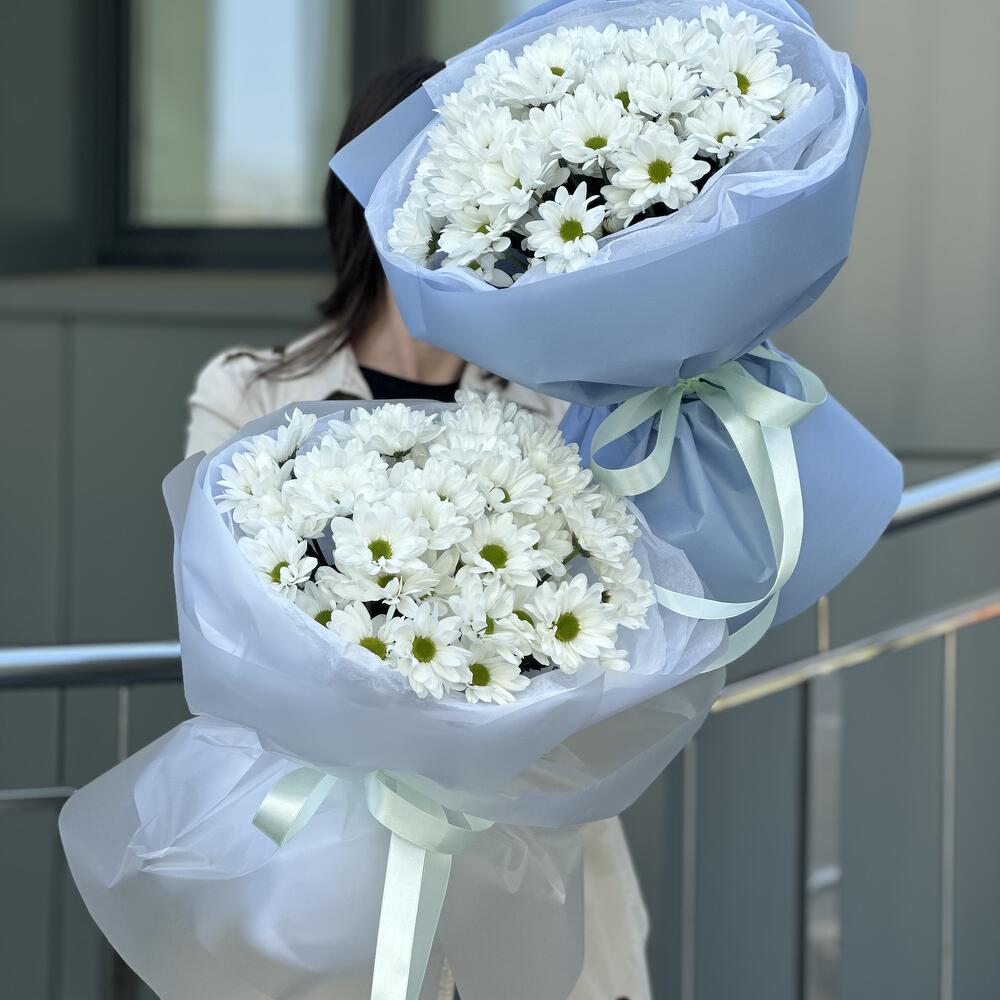 Хризантема Ромашковая – 7 шт. Оформление – 1 шт.