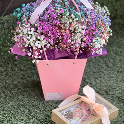 Сумочка с гипсофилой и клубникой в шоколаде