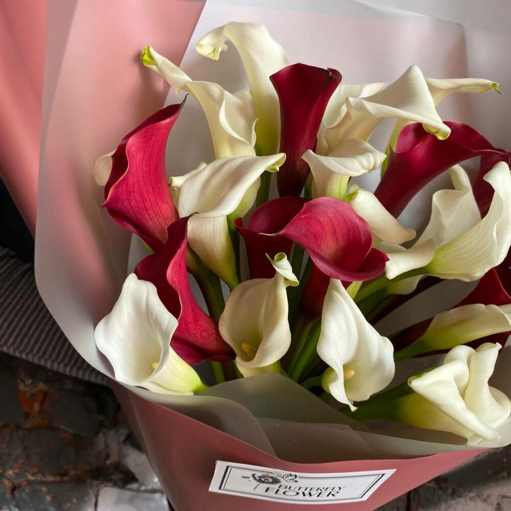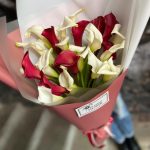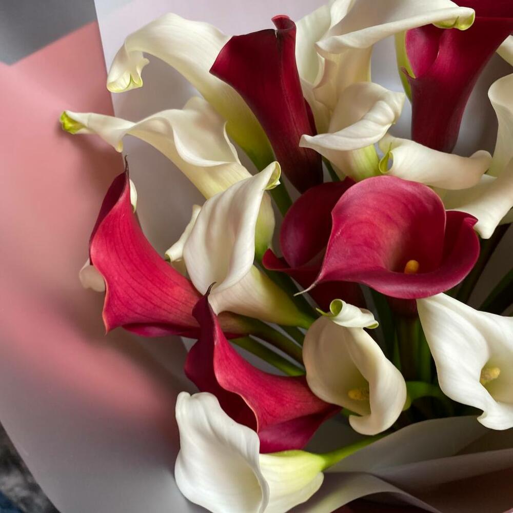 Букет из пионовидных роз и калл «Сбывшаяся мечта»