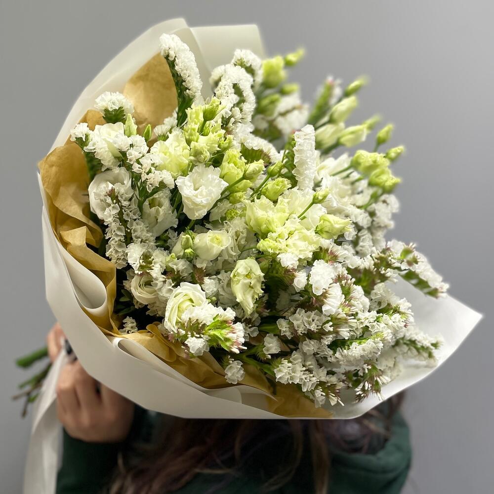 Букет из белой эустомы и статицы