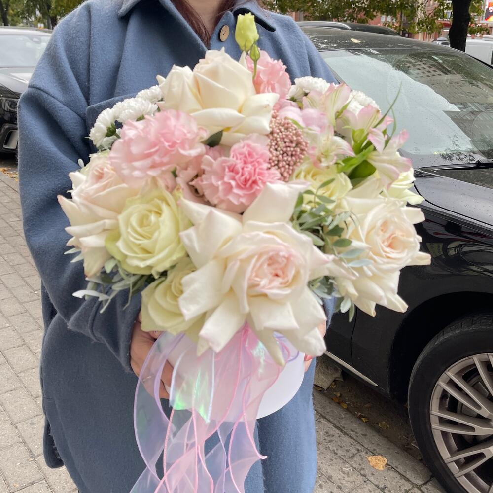 Нежная шикарная композиция порадует и удивит родных .Сочетание самых нежных роз произведёт самые приятные впечатления !Уважаемые покупатели! Пожалуйста обратите ваше внимание на размер композиции при заказе! Он учитывается вместе с упаковкой Чтобы наши прекрасные композиции дольше радовали получателя рекомендуем вам:⭐Не вынимать цветы из коробки/корзинки⭐Поливать композицию каждый день (воду нужно вливать в центр, чтобы вода правильно распределилась) ⭐Не ставить цветы у отопительных приборов и на сквозняке