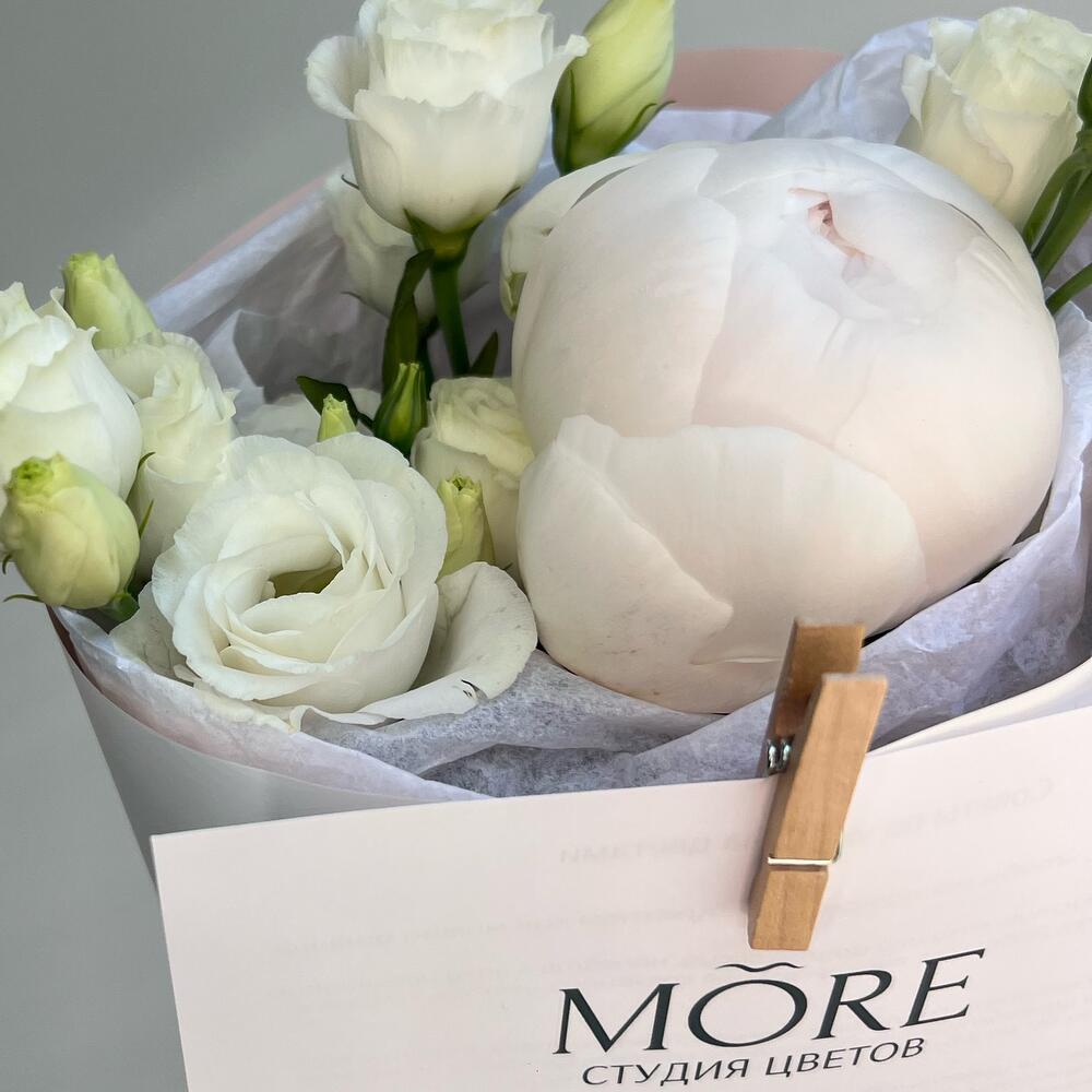 Шляпная коробка с розами, гвоздикой, гипсофилой и антуриумом "Kenzo box"