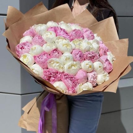 Букет из 9 пионов с эвкалиптом "PINK PLOMBIR"