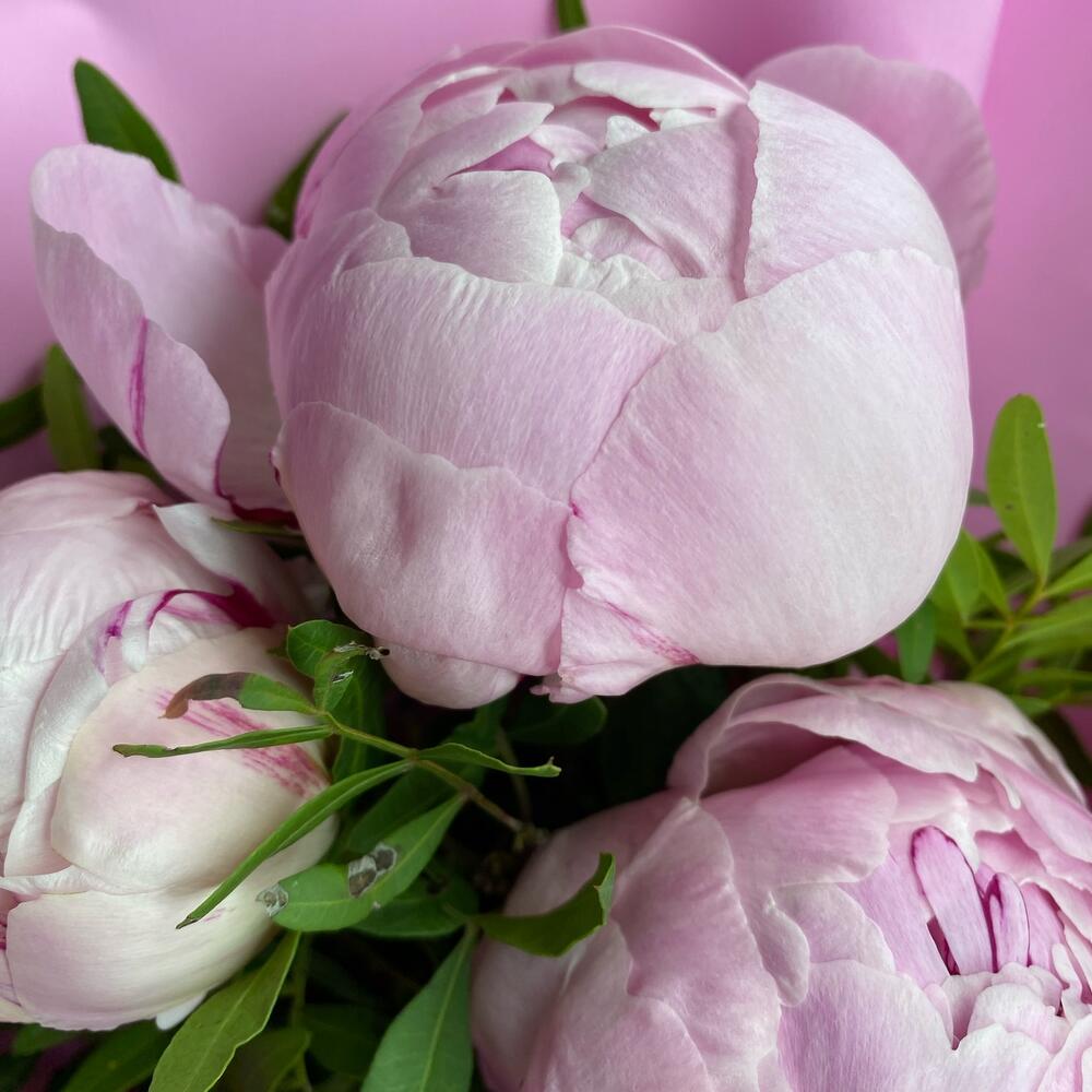 Букет из трех пионов с зеленью
