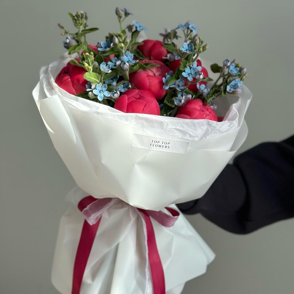 Букет с пионами и незабудками