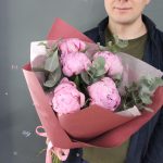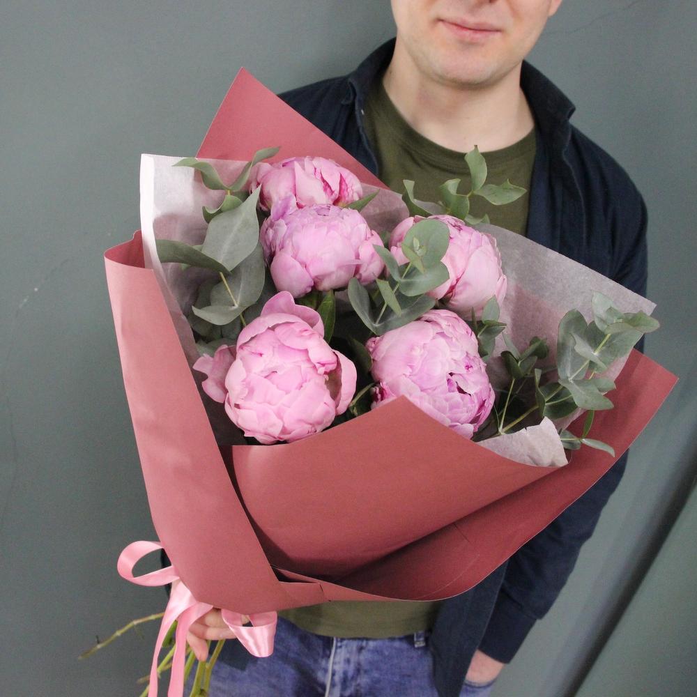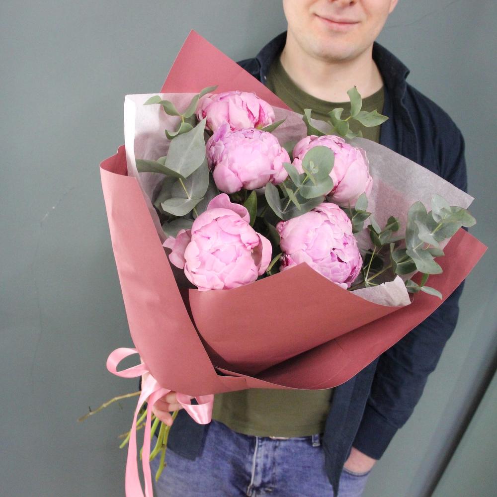 Пион – 5 шт.Эвкалипт – 4 шт.Лента атласная – 1 шт.Тишью – 1 шт.Бумага – 2 шт.