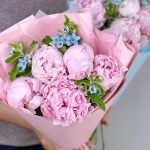 Розовые пионы с незабудками