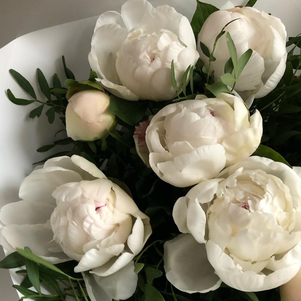 White Swans: букет из 9 белых пионов и зелени