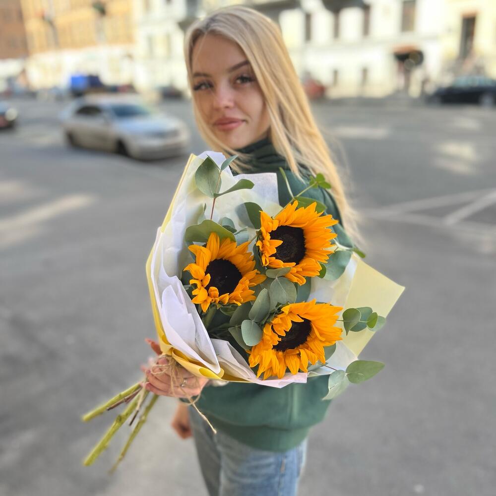 Букет из подсолнухов и эвкалипта "Онис"