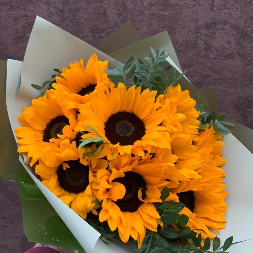 Подсолнух – 9 шт.Фисташка – 3 шт.Упаковка дизайнерская – 2 шт.Лента атласная – 1 шт.