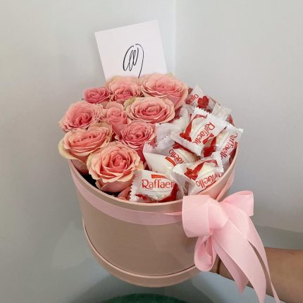“Сладкое сердце ” – цветочная композиция с сладостями в коробке “Сердце”