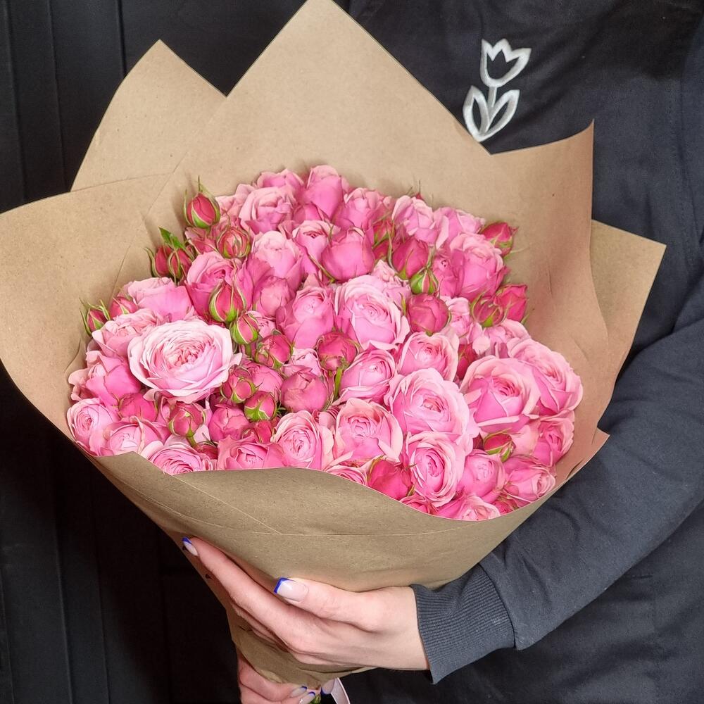 15 пионовидных кустовых роз в букете