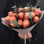 15 пионовидных кустовых роз монобукет