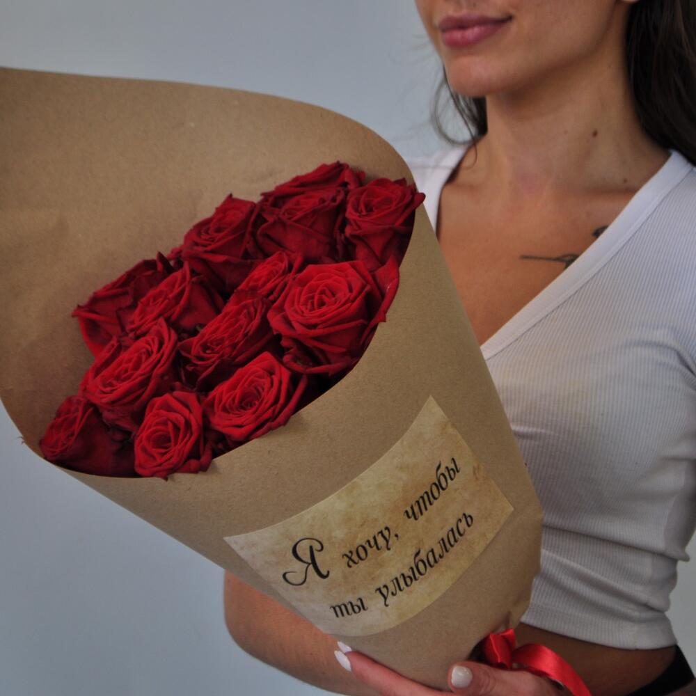 Роза – 15 шт.Крафт упаковка – 1 шт.