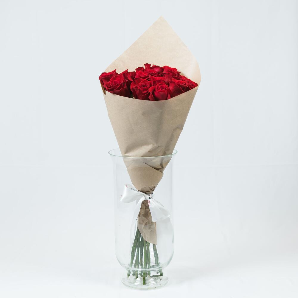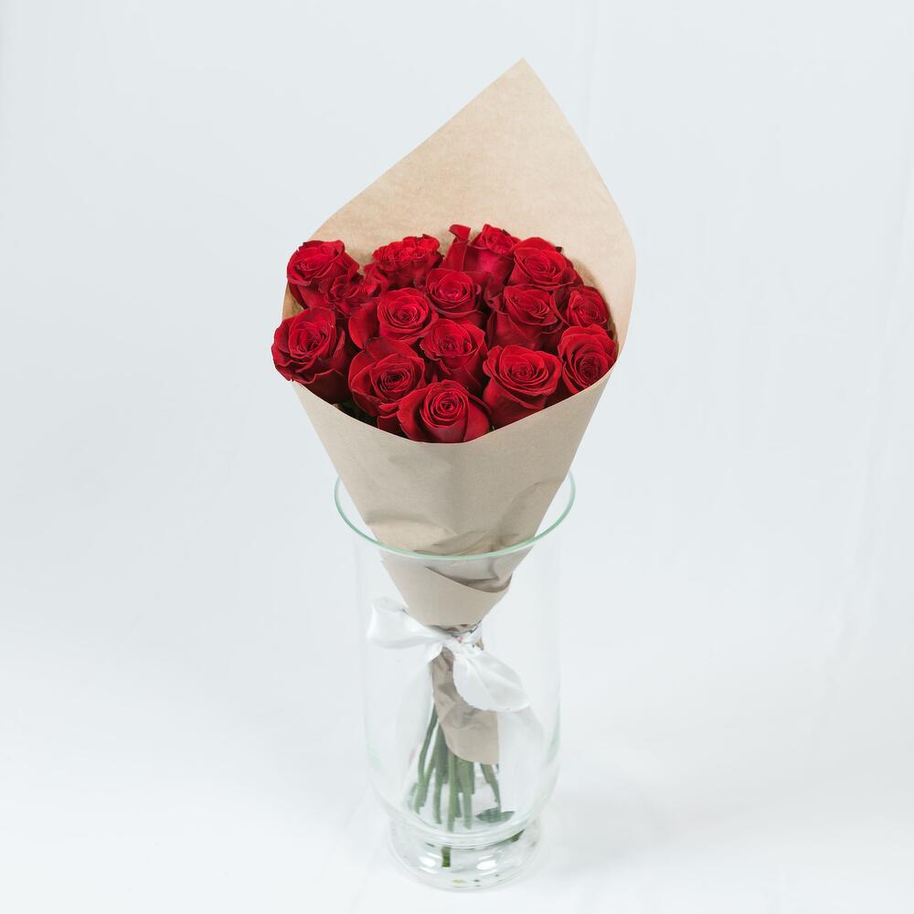 Роза Эквадор – 15 шт.Лента атласная – 1 шт.Крафт дизайнерский – 1 шт.