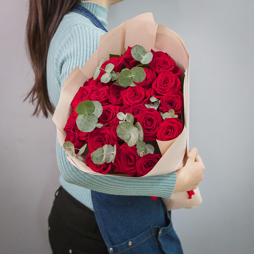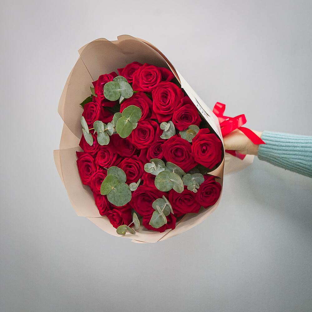 Эвкалипт – 2 шт.Роза – 25 шт.Матовая пленка – 1 шт.