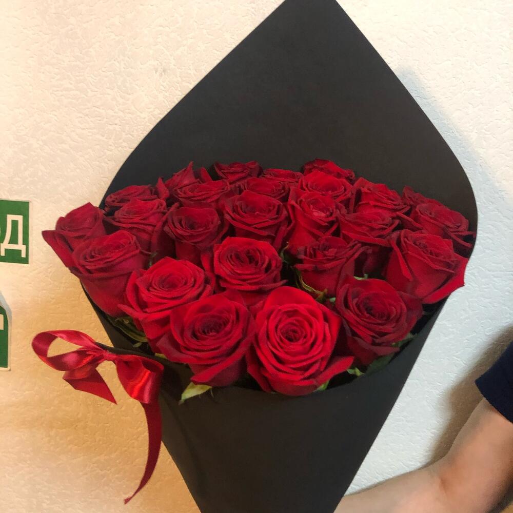 розы эквадор – 25 шт.Лента атласная – 1 шт.Фоамиран – 1 шт.
