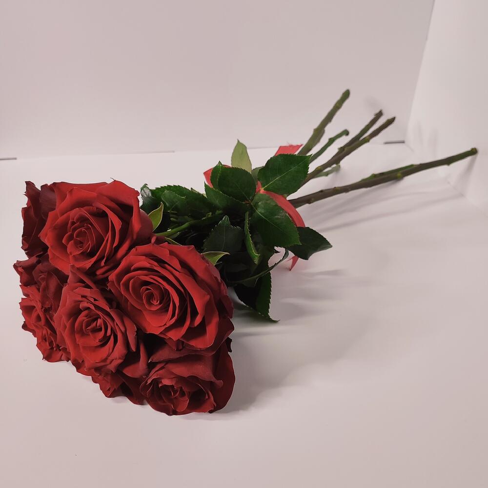 9 красных роз 60-70 см