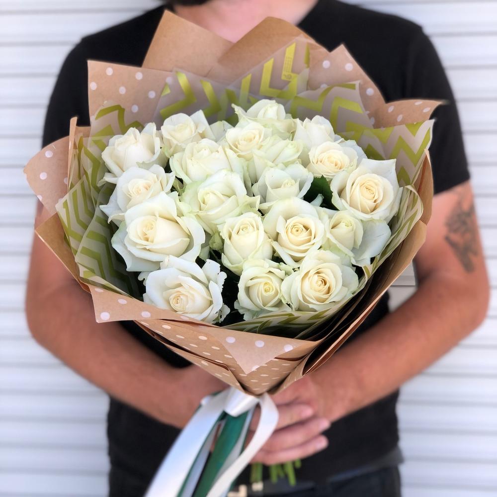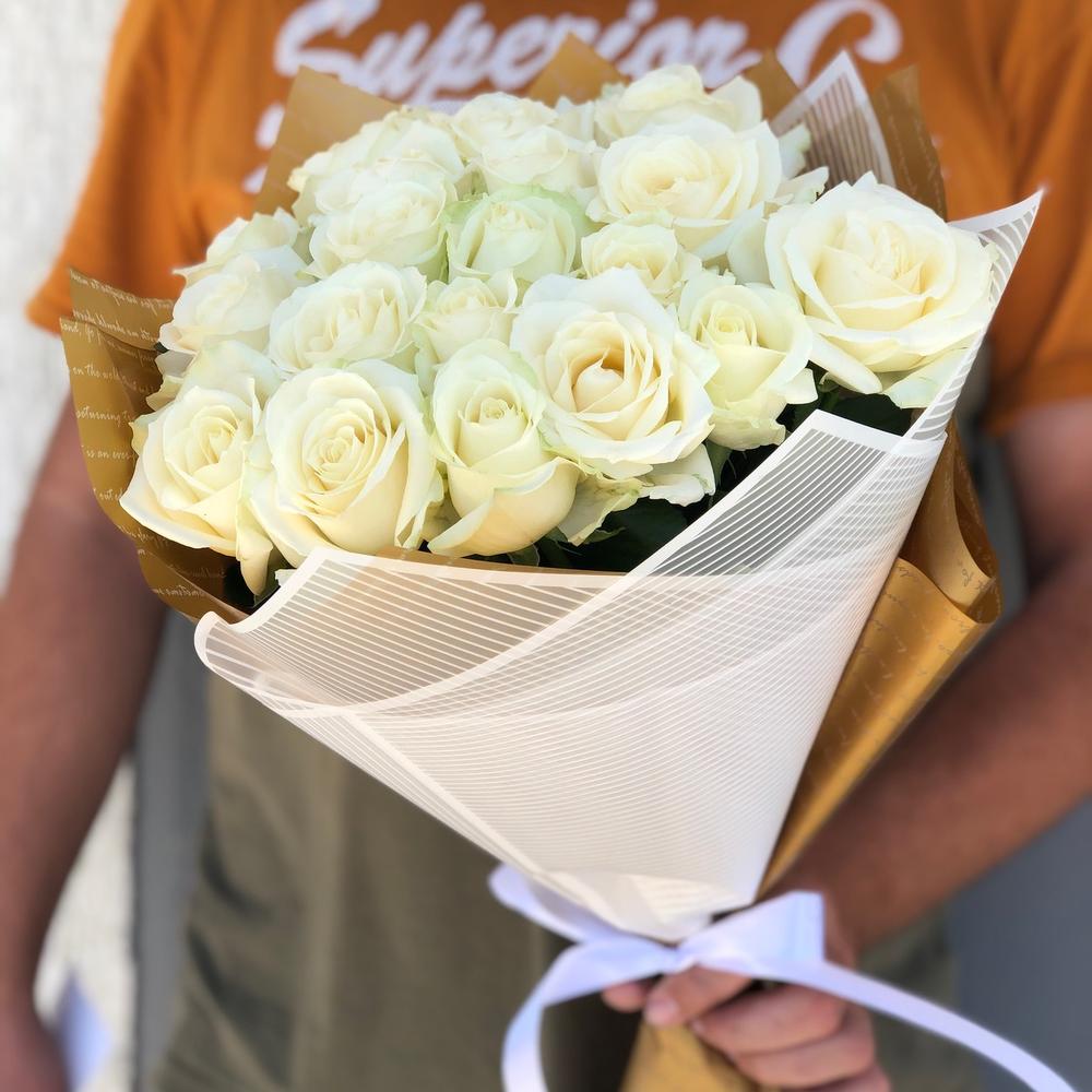 Метки: 19 роз, Белые розы, На свадьбу, от 2000 до 3000 руб, Роза 50 см