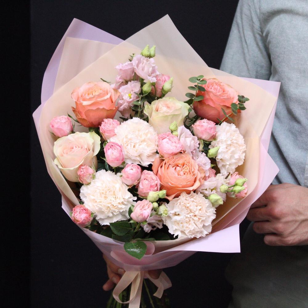 Категорий: Гвоздики, Кустовые розы, Лизиантусы, Пионовидные розы, Розы