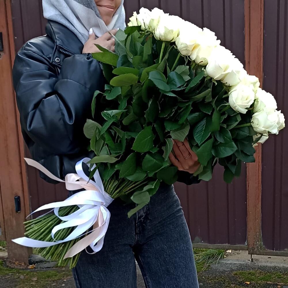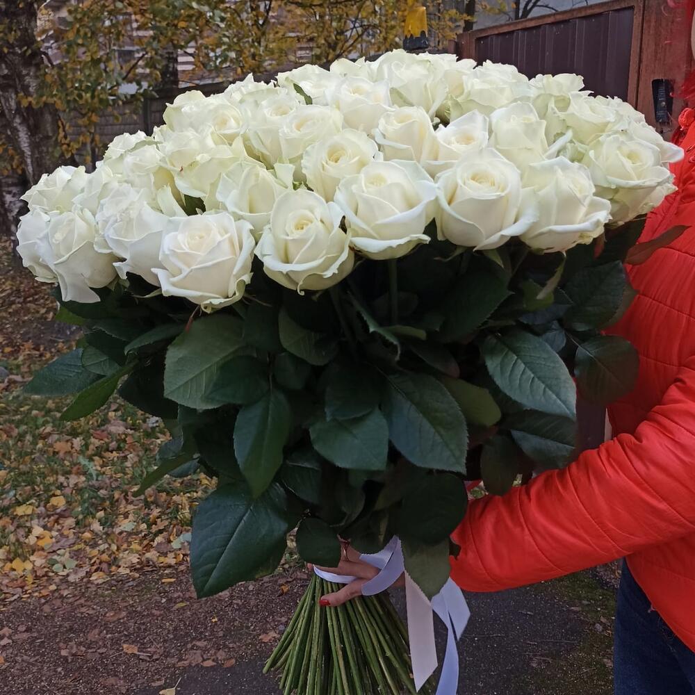 Лента атласная – 2 шт.роза россия белая 70 см – 101 шт.