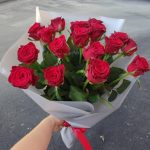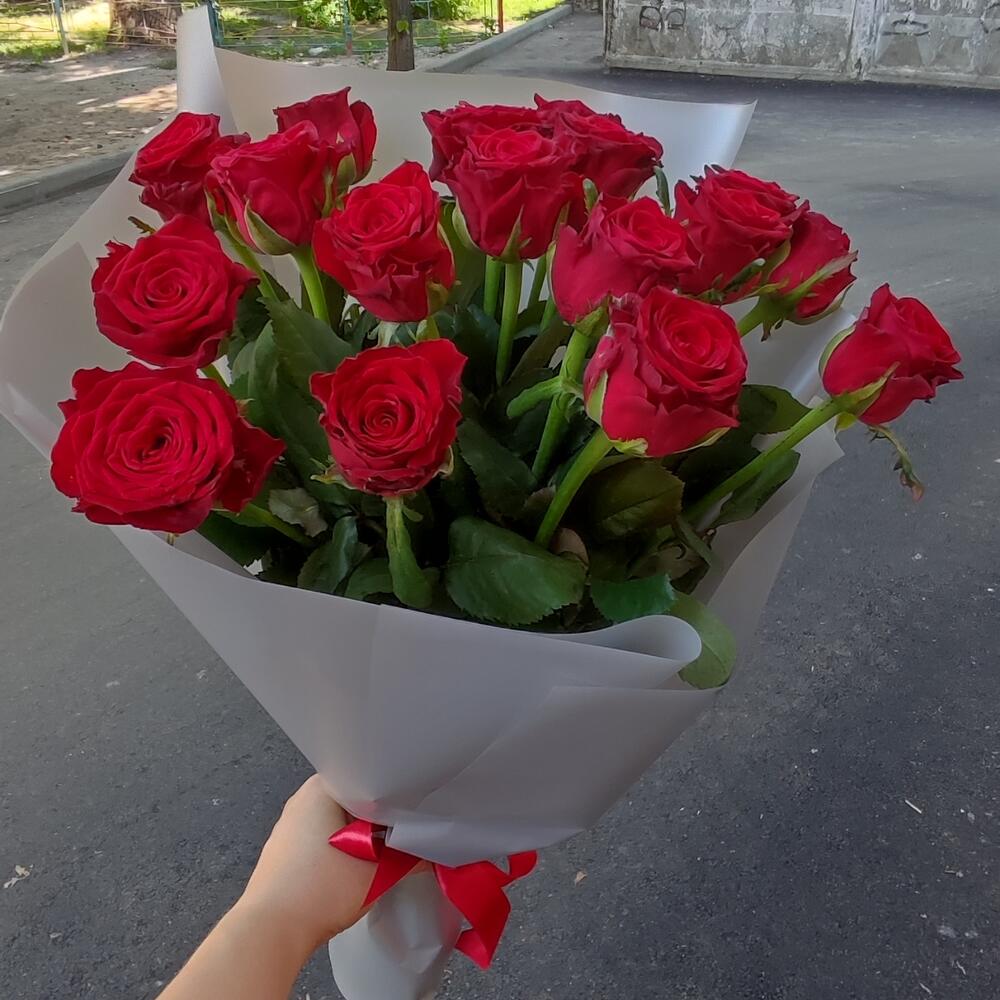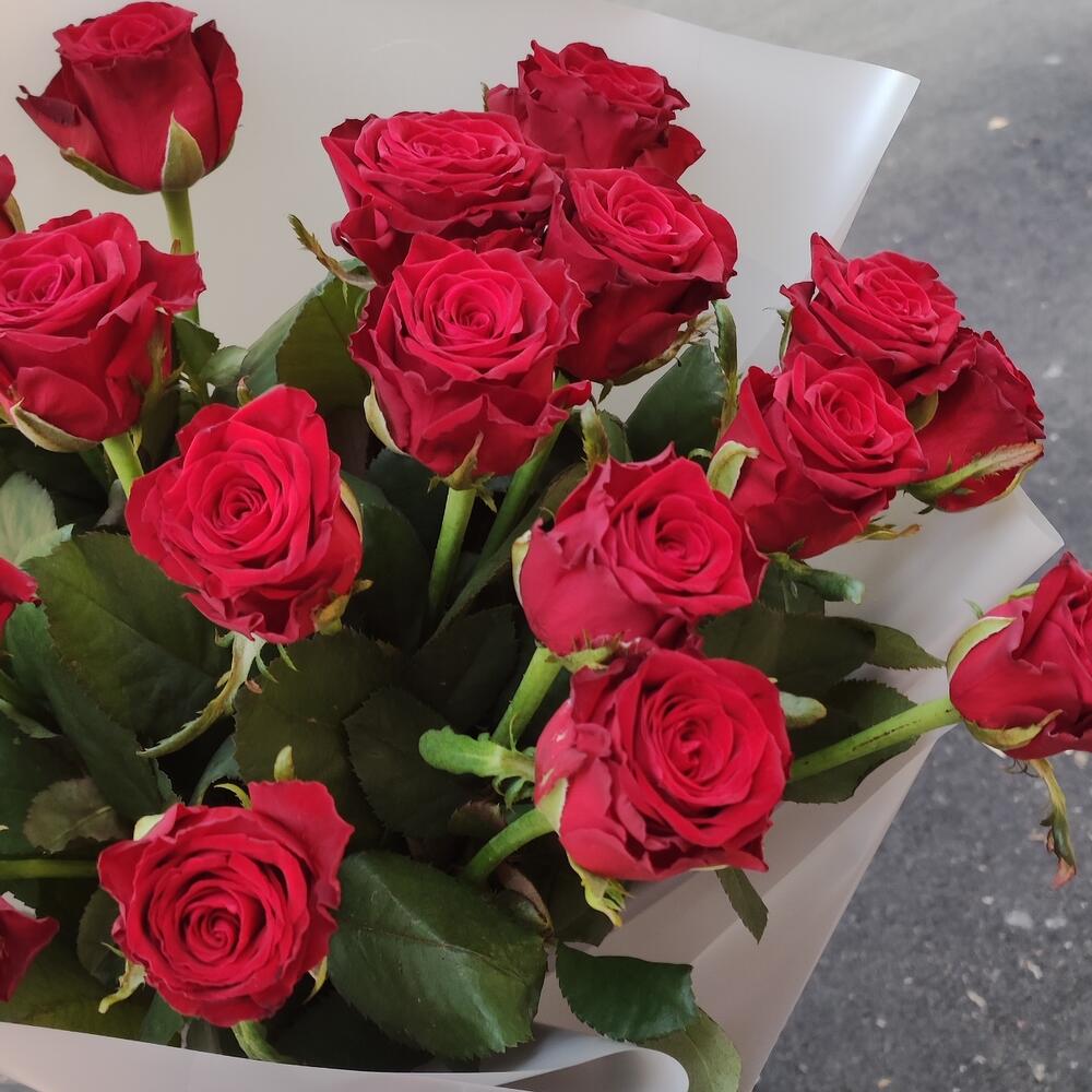 Роза украинская – 17 шт. Упаковка калька флористическая – 1 шт.