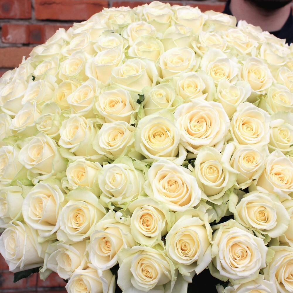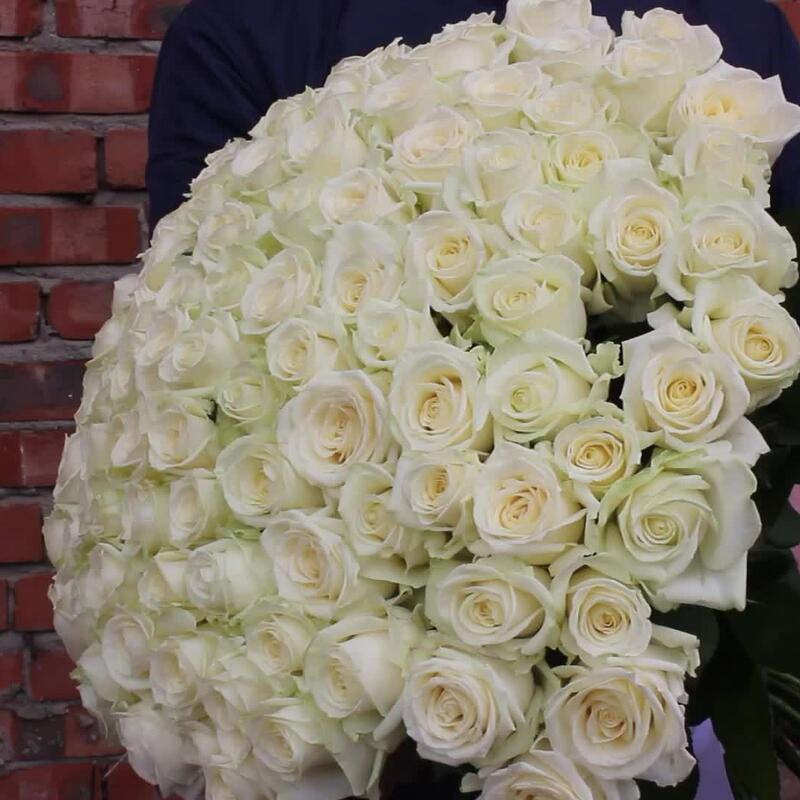 Роза белая – 101 шт.Лента атласная – 1 шт.